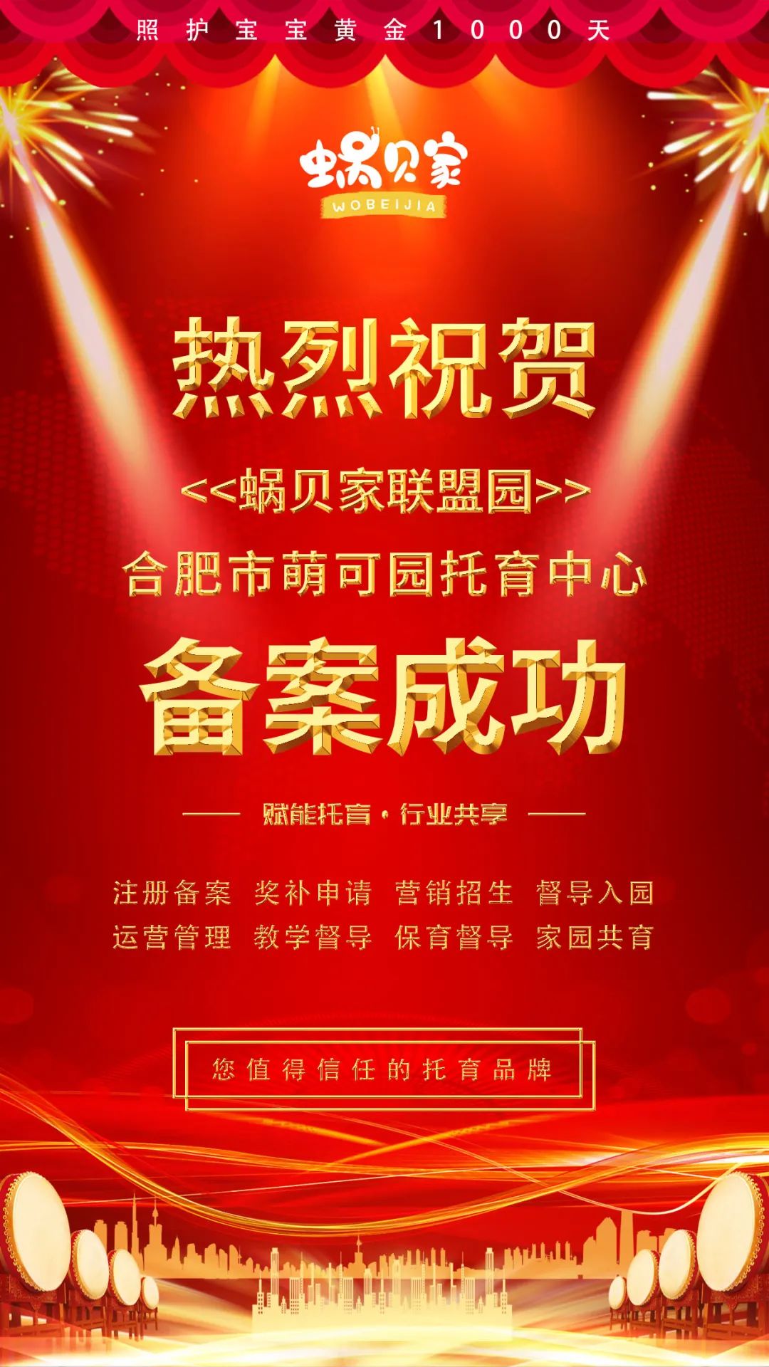 11月3日,热烈祝贺蜗贝家联盟园:合肥市萌可园托育中心备案成功。